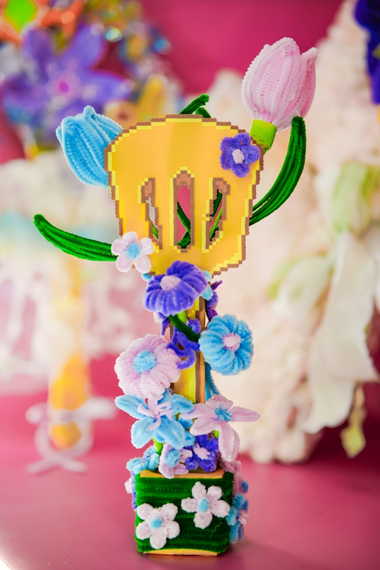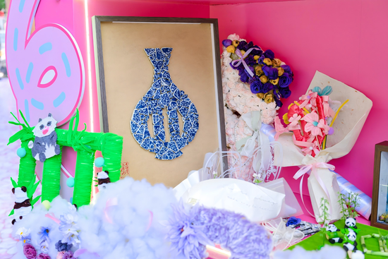 另一位玩家的作品则充满了温润的家国情怀。她带来了一把由青花瓷片拼凑的“青花瓷”纹样的铲子,图案灵感来源于我国传统文化青花瓷。她分享道,“电竞的活力与青花瓷的古典在这里相遇,就像我今天在这里,把一份文化的记忆,交到一位新朋友手中。” 这把铲子不仅是一件物品,更成了一份流动的、承载着文化温度的情感信物。