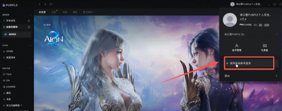 进入【PURPLE】平台后点击【头像】找到【使用其他账号登录】即可