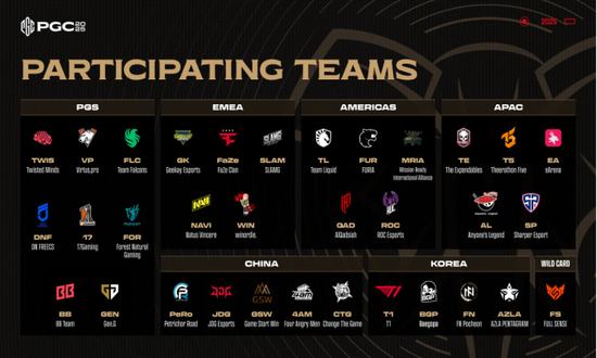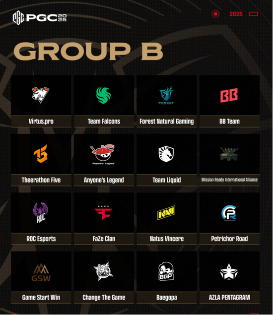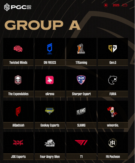 本次为PCL出征PGC 2025的战队共有6支,均分在 A、B两组之中,具体为