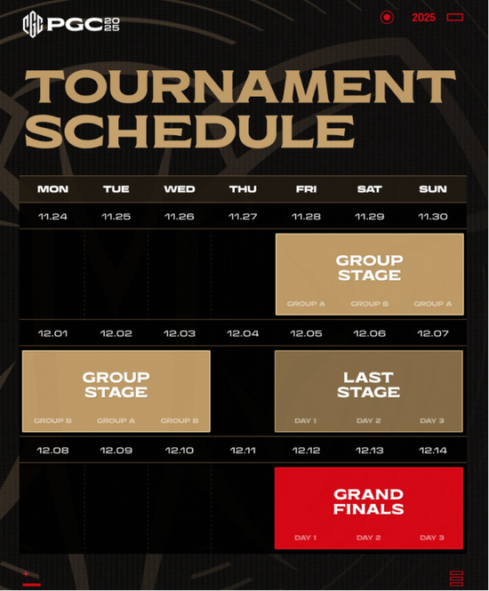 目前,PGC 2025全球总决赛门票已正式开售,除了线上精彩不断的直播活动外,比赛现场也将举行众多丰富的福利活动,相关信息也将很快公布,大家可以多关注PCL官方赛事资讯。
