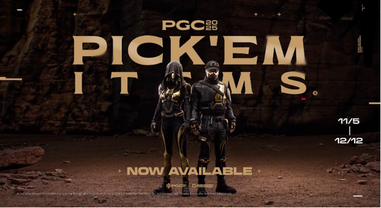 竞猜从11月5日正式开始,至12月12日总决赛前,除了1张免费签到投票券外,所有玩家还可通过购买游戏内相关道具或礼包最多获得额外的7张投票券。参与竞猜后可兑换到昵称更改券、PGC 2025 平底锅、PGC 2025 降落伞、PGC 2025 头盔(3级)等限定物品。