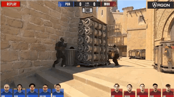 攻守互换,M80开局控中拿信息,Lake双枪顶下水道三杀先拿两分。长枪局,PUA开局爆弹提A被Lake三杀拦下再丢两分。第十七回合,PUA第二时间爆弹提B,nicx三杀暴力破点拿到下半场第一分。下一回合,PUA开局爆弹Rush A无伤下包,Kvem警家三杀再追一分。比分来到8-10,PUA几波提速进攻成功再拿三分。第二十二回合,PUA进B被道具劝退后转A无果丢分。下一回合,PUA中夹B成功下包,但神秘s1n绕B2打两人拿下残局。赛点局,s1n和Swisher双人五杀打出完胜。M80以13-11险胜图一。