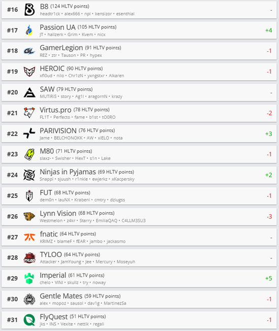 一起看看最新一期HLTV世界排名吧。