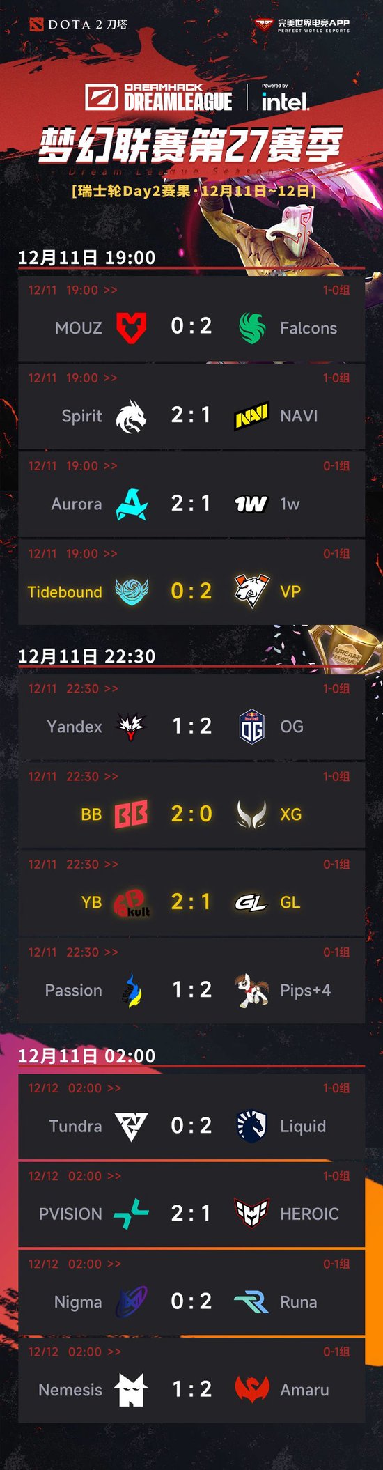 梦幻联赛S27瑞士轮第二日结束,XG不敌BB,YB战胜GL,XG与YB进入1-1组,而Tidebound不敌VP,跌入0-2组。