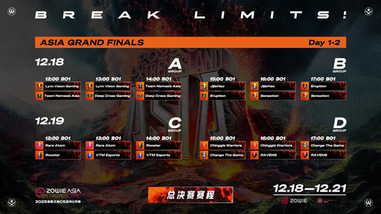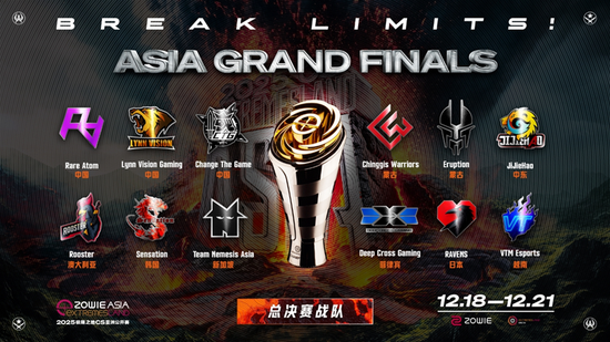 为了给更多亚洲选手登上国际舞台的机会,2025极限之地CS亚洲公开赛延续采用多赛区全公开预选的方式进行,设有中国、蒙古、新马泰、日本、韩国、中东、越南、菲律宾以及大洋洲9大赛区,共12支战队晋级亚洲总决赛。包括LVG、RA、CTG等来自9个国家或地区的12支队伍将于2025年12月18日-21日齐聚中国上海,争夺最后的2025极限之地亚洲总冠军以及15万美元总奖金!