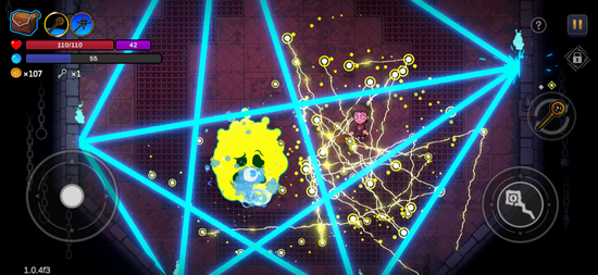手游版完整的保留了PC端的核心玩法与叙事框架,玩家将扮演误入异界的勇者,通过拔出传说法杖开启对抗古神的旅程。《魔法工艺》的核心魅力在于其“魔法编程”系统,在手游版中,玩家依旧可以使用超过100种法术符文自由组合,例如分裂、旋转、弹射、穿透等基础能力,还有诸如悬停、追踪目标、触发连携等前置效果,在将这些机制彼此叠加后,创造出如“追踪+弹射+分裂”等创意无限的复合型法术。