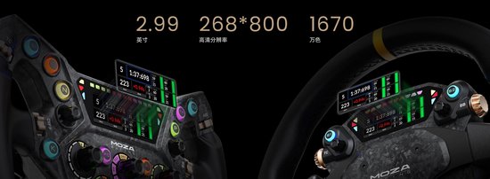 作为MOZA CS与KS方向盘的进化版,MOZA CS Pro与MOZA KS Pro,从命名上就可以看出定位更专业,更进阶。所以无论从产品外观还是性能配置,都有全面显著的优化与升级。两款产品均配置了2.99英寸、268*800分辨率、1670万色高清全彩显示屏,能实时显示各类赛车关键数据的变化,帮助玩家用户快速分析车辆及赛场动态。此外,还可以根据个人需求定制专属的仪表界面,通过MOZA自主研发的仪表UI自定义系统,就能完成动态、静态图片上传、UI重绘、仪表数据等编辑,系统内置多款仪表UI预设,可快速切换,并且支持导入其他创作者设计的MOZA仪表UI。