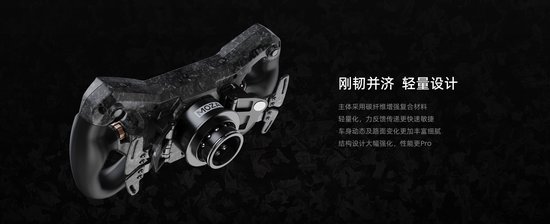 得益于极致的轻量化设计理念,KS Pro主体采用碳纤维增强复合材料,结构设计较同级产品大幅优化,主盘部分重量仅为1100g(不含快拆),让力反馈传递更加快速敏捷,细腻传递车身及路面的丰富细节变化。磁吸锻造碳纤维双离合拨片,可有效避免换挡错误导致动力总成损伤。
