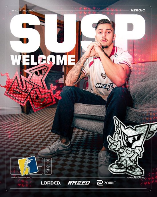 HEROIC战队已正式签下susp,替代yxngstxr,完成了一次瑞典籍选手的交接。