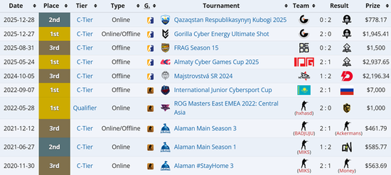 her1tage今年19岁,他于2020年底便开始在各种未记录于HLTV的临时队伍参加各种小型赛事,在接近四年的时间里拿到了3冠1亚(资格赛、C级赛事)的成绩。her1tage于2024年11月终于加入有HLTV记录的队伍Enjoy,期间最高只拿到过一些资格赛的四强,并无突出成绩。但在今年11月加入GoodGame Club后,her1tage随队在一个半月内拿下4冠1亚(资格赛、C级赛事),职业之路逐渐步入正轨。