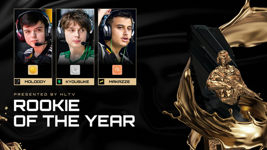 HLTV在2025颁奖典礼上公布了年度最佳新秀奖项的获得者与排名,molodoy荣获该荣誉,kyousuke位列第二、makazze排名第三。