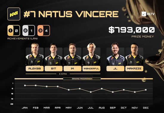 但好景不长,他们紧接着在连续三项赛事中表现糟糕,显然需要大量工作才能重回顶级战队行列。这些工作在StarLadder星联赛秋季赛前的集训中完成,尽管该赛事本身不计入此排名,但它为NAVI在年末最后几个月积累了急需的信心。