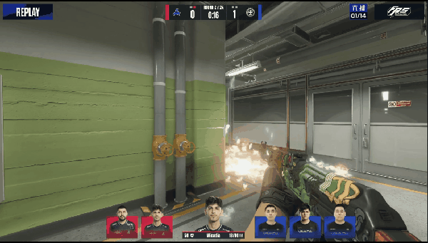 下半场,HOTU做进攻方,手枪局中路先去一人被打掉后,四人摸进A大,但让包点箱后MA3JR抓住机会完成四杀。