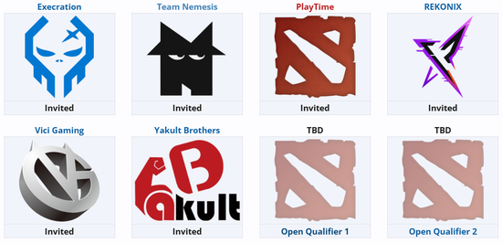 共十六支参赛队伍,其中十二支直邀战队,目前尚未公布直邀名单;亚洲(中国和东南亚)、西欧、东欧、美洲(北美和南美)各一个预选名额。