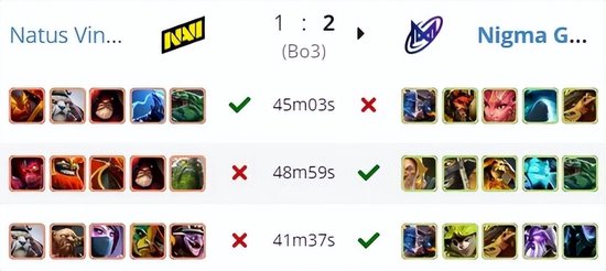 Nigma的出线最出乎观众意料,虽然NAVI在西欧众强中算不上顶流,但新赛年战绩远远好过难以出线的Nigma。两队交手首局比赛NAVI顺利获胜,来到第二局,Nigma选出了版本答案克林克兹,拖到大后期有了大炮圣剑的克林克兹开启烈焰之军,让一切英雄克制关系化为泡影,Nigma多次绝境守高成功,反破NAVI三路,最终在少打多的情况下抵挡住NAVI的最后一博,拿下了关键的第二局。来到第三局SumaiL似乎找回了年轻时的感觉,中单紫猫全场带动节奏,以13杀0死17助的战绩带领Nigma取胜,晋级伯明翰。