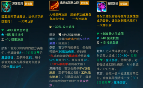 不仅如此,万众期待的羊刀正式加入局内,还有“深渊面具”、“璀璨回响”等装备随之而来。此外,辅助和单人路也获得了相应优化调整。