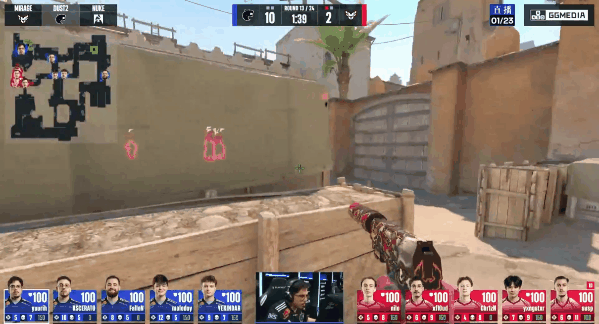 次回合FURIA默认后A小打A,Heroic依靠susp和xfl0ud的发挥拿到4v3的人数优势回防,回防途中Heroic的yxngstxr发挥回防成功。手感上来的FURIA连拿六分,以10-2结束上半场。
