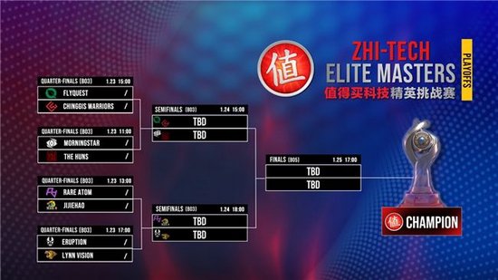 1月23日至25日,ZEM值得买科技精英挑战赛(Zhi-Tech Elite Masters,简称ZEM)线下淘汰赛将于北京微博IN钻石中心正式打响。线上预选赛成功突围的八支战队——Chinggis Warriors、Morningstar、The Huns、JiJieHao、Rare Atom、FlyQuest、Lynn Vision、Eruption——将展开为期三天的强强对抗,争夺赛事冠军,赛事冠军也将有机会获得2026英雄亚冠ACL×CS封闭预选赛外卡资格。