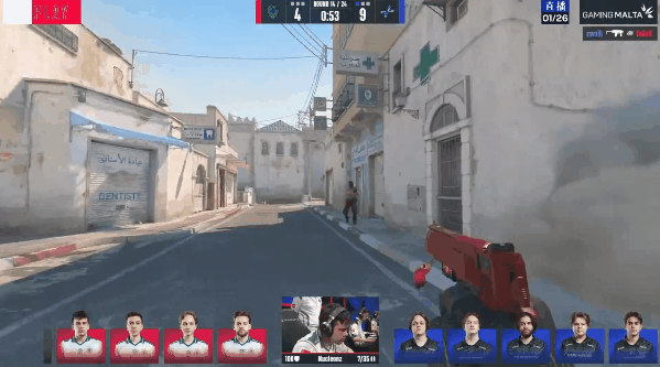 换边再战,土匪集合抢A大,xiELO先拿首杀被补,Jame的蓝车防守也见成效收下两人,土匪仅剩TeSeS和kyxsan两人被锁定位置,CT回防包夹成功赢下手枪局。