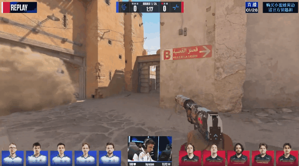 手枪局PV先做进攻,土匪给上X箱烟再补警家想进攻B点,kyxsan拿下双杀后被补,土匪战至2V2成功下包,m0NESY回防立功完成双杀成功帮助队伍赢下手枪局。