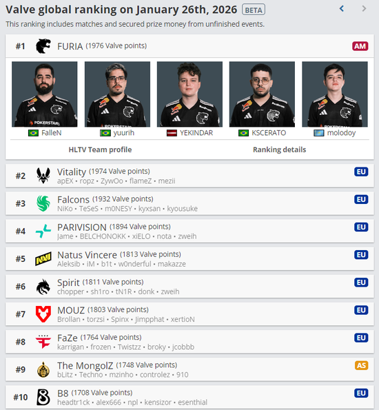 首支以3-0的比分夺冠的独联体队伍为Spirit,他们在IEM卡托维兹2024、IEM科隆2025等赛事上都完成过这一成就。经此一役,PARIVISION的V社世界排名已来到了世界第四位,在该赛事线上赛阶段开始前,PARIVISION的V社排名仅有16名。