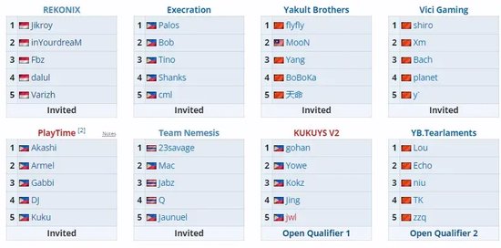 本次亚洲赛区预选中,YB与VG直邀参赛,Lou和niu等人组成的YB.Tearlaments则从海选杀出,晋级本次预选。YB.Tearlaments在首轮海选中准备不足早早出局,来到第二轮海选,他们接连战胜Monet、JT和Kaka领衔的Game Master,Emo和Ghost所在的sapsap,以及近期东南亚预选赛常客Ivory,最终晋级预选。
