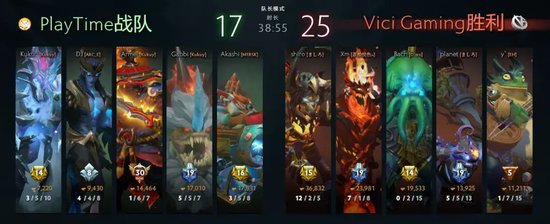 第二局PlayTime前期依靠拉席克带队打架建立了些许优势,好在VG找到机会把局势稳定了下来,16分钟抓到对面酱油后趁机打盾,给飞机刷钱打出了空间。后期矮人直升机装备成型,团战摧枯拉朽,平推PlayTime高地赢下比赛的胜利。