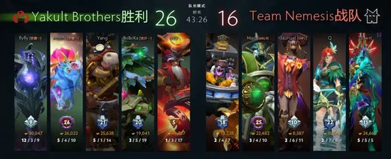 第三局双方前中期经济差距不大,几波抓人都是人头互换。虽然YB打肉山控盾,但是几次带盾的推进都没有打好,迟迟打不出优势。最后Nemesis三核装备成型团战越来越难打,44分钟Nemesis买活守高团灭YB,随后控下肉山盾后开始进攻,把风行者打成买活死后一波推掉了遗迹。