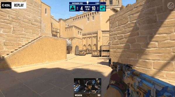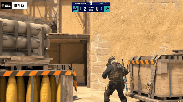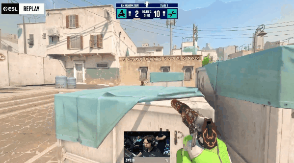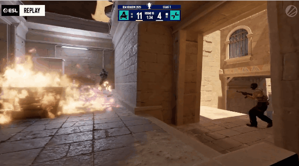 下半场手枪局,土匪摸下水道拱门A二楼夹A进攻,Jame先接拱门Wicadia,BELCHONOKK和xiELO也没枪软拿到击杀,nota兜底完成双杀轻松拿下手枪局。