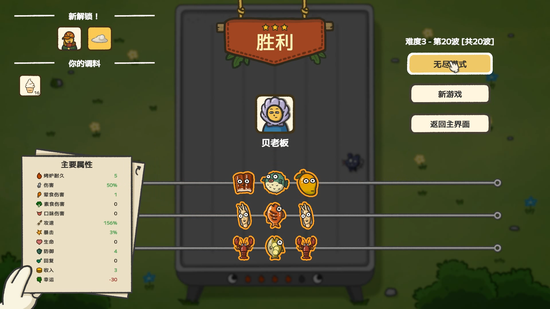 不仅如此,游戏还为渴望更高强度挑战的烤串师傅们准备了无尽模式。在这里,关卡不再设有明确终点,鼠鼠会一波接一波不断涌来,轮次越深,敌人强度与数量也会同步飙升,味够大,火够猛,能不能扛住,全看操作了。