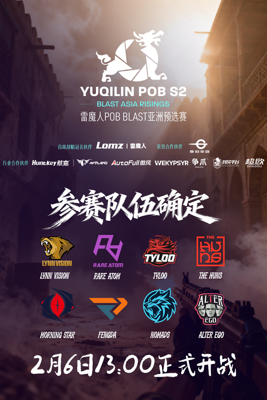 Yuqilin POB S2 - 雷魔人 POB BLAST 亚洲预选赛直邀战队名单正式公布!参赛队伍现已全部确定,赛事正赛将于2月6日下午13:00正式打响!