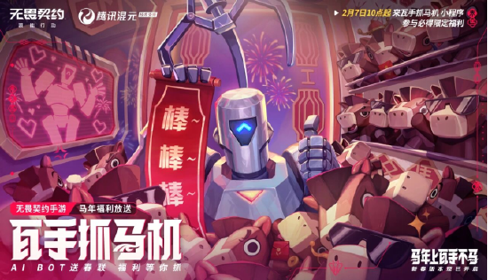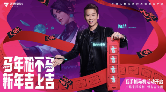 与此同时,陶喆联手《无畏契约手游》为玩家们送上的重磅福利活动“抓马机”也一并到来。2月7日参与瓦手“抓马机”活动,超高概率抽取陶喆联名款“吉”字卡面和魔性满满的“Duang”字称号。活动首抽还必得“马年大吉”限定头像!