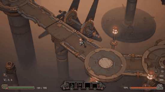 这游戏的核心玩法是肉鸽+动作,你的任务就是一路杀上去,边打边迭代技能和道具,战斗爽!在笔者体验下来,游戏有点像《哈迪斯》的机械版,玩法虽然中规中矩,但是战斗非常干净爽快!打击感可以说非常出色,战斗节奏很快,一玩进去就停不下来。