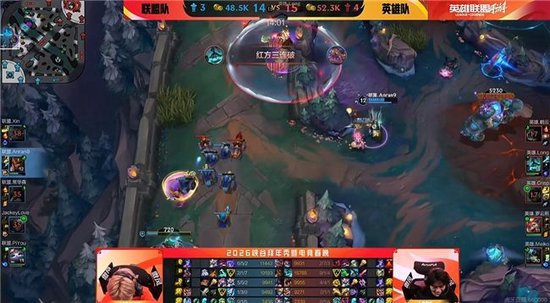 首局海克斯大乱斗,罗云熙在Crisp与Meiko两位冠军辅助的保驾护航下,操刀英雄Carry全场,斩获惊艳"五杀",英雄队先声夺人。