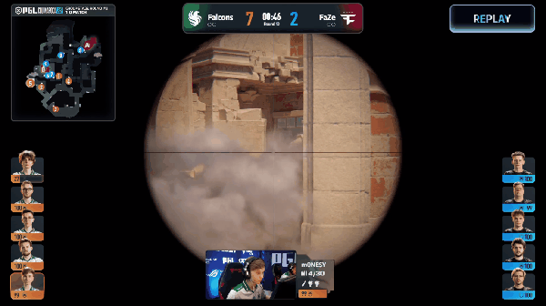 换边后broky完美顶烟找到枪位,双枪接住三人,与karrigan完成双人五杀。下回合猎鹰完美B区爆弹立马翻盘成功,下回合Falcons再次爆弹B区,总监蹭烟雾边缘使用FN57点掉三个,FaZe钢枪成功。第十六回合残局兜底神TeSeS守包一打二,帮助猎鹰直接拿下赛点,枪械优势的Falcons顺势收下比赛,比分13-4。