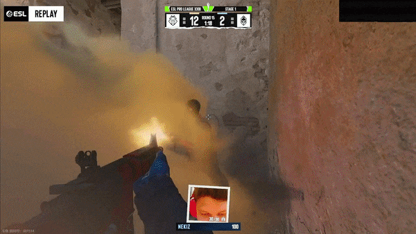 来到上半场第一个长枪局,CT两人抢香蕉道,一颗匪口烟一颗矮墙烟隔断补枪枪线,随后人跟闪出双人三杀,剩余两人不敢补枪最后只能匪口保枪,比分3-0。第五回合,双方开局在香蕉道的比拼一换一结束,补B的CT想给矮墙一套被土匪轻松化解反打进包点,包点融化剩余CT只能保枪,比分1-4。第七回合,HEN1大狙压侧道拿到首杀,人数优势的CT退后点打回防,felps扫转三杀终结战斗,比分5-2。第九回合,土匪B区简单控图后直接打A,但CT三A交叉枪线全刷完,比分被拉开至7-2。第十一回合,土匪香蕉道的控图没有被CT的矮墙烟拖住,G2利用手中道具循序渐进前推,CT两人在守没有补枪包点告破,剩余队友直接原地保枪,比分4-7。上半场最终局,土匪B区人跟道具一起出,单B的HEN1空枪被瞬秒,四回五回防土匪占住警家保一边顺利拿下半场最后一分,比分暂时定格在5-7,Gaimin Gladiators暂时领先。