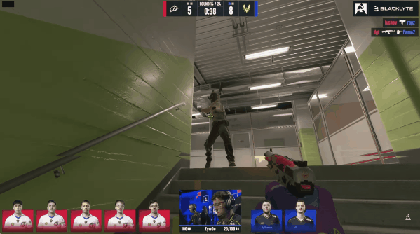 图二为Vitality选择的Nuke,先作进攻方的他们直接爆弹A区,主A的CT被秒后Vitality进入包点被三楼上的luchov双枪秒了三个,9z反而拿下手枪局。下一局Vitality强起依旧快提A区,apEX突破秒了两个,又在包点抬头接了三楼出来的两人,Vitality翻盘成功拿下第一分!被翻盘的9z经济重置,他们强起和eco都没能拿下,Vitality将比分领先至3-1。第五局,Vitality继续一招鲜攻打A区,双方3换3后apEX和ropz的2v2残局未能拿下,9z拿到第二分。下一局Vitality想变奏打外场被K1和外场的CT击杀三个,9z追平比分。随后双方一人一分,比分没能拉开。第九局,双方外场1换1,Vitality在等了一会后进攻铁板,铁板防守的CT一人没换被击杀,B区轻松沦陷,Vitality拿下第五分再次取得领先。连续丢分的9z进入eco,eco回来长枪局9z依旧没能拿下,Vitality将比分逐渐扩大。上半场结束,Vitality以8-4领先。