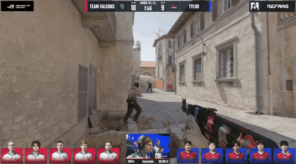 第九局,Zero在中路三杀都没能救主,NiKo在黑屋转着三杀帮助队伍以8-1领先。这下TYLOO总算要eco,第十一局,TYLOO这次抢中路没能抢过对手,白掉两人,人数优势的Falcons默认后进攻A点拿下第十分。上半场结束,Falcons以11-1大比分领先。