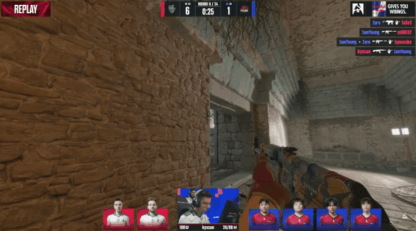 图一为TYLOO选择的Inferno,先作进攻方的他直接进攻A点,JamYoung P250突破将连接和锅炉房的尼孩秒杀,剩下包点TeSeS孤立无援,TYLOO轻松进入A点下包拿下第一分。下一局TYLOO想继续快提A点被大坑TeSeS和包点m0NESY手枪交叉枪线接完,Falcons立马翻了回来。这分过后TYLOO同样强起,他们小枪在香蕉道和CT对枪完成1换2,拿下人数优势的TYLOO顺势进攻B点,同样翻盘成功。第四局,NiKo在B点花坛上接了三人帮助队伍拿下第二分。下一局,强起的TYLOO想快提连接包夹A点被TeSeS三杀接住,TYLOO进入eco。第七局,TYLOO轻松控制住香蕉道后直接爆弹B区,B点kyxsan和kyousuke只换掉一人,剩下三名CT只能保枪,TYLOO拿下第三分。下一局,Falcons双人前顶二楼和对手1换2,但随后人数优势的回防他们没能协同,一个个送掉,TYLOO再得一分。