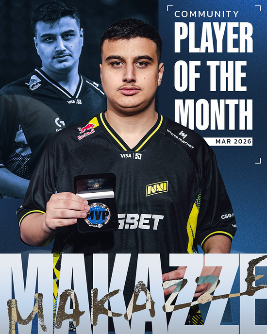 凭借着在EPL S23上的冠军和MVP成绩,以及在BLAST鹿特丹公开赛上不错的表现,Natus Vincere的步枪手makazze当选2026年3月HLTV月度最佳选手。