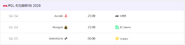 布加勒斯特首日焦点战当属PARIVISION对阵Legacy,而高种子队伍Astralis与The MongolZ将分别迎战MIBR和BC.Game。