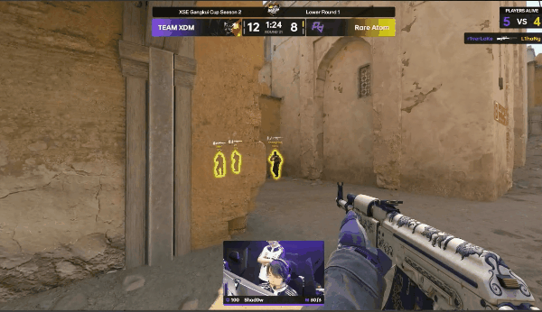 第九回合,XDM中夹B,RA三人B区只做到3换3,但回防的L1haNg成功打扫战场,完成1v2残局。第十回合,XDM中期上A小,TiGeR大狙连收两人,警家单走的r1verLake也被发现,RA兵不血刃拿下第五分。下一回合,TiGeR先拿首杀,中期XDM晚出A大与A小同步,但被SUMMER和L1haNg轻松化解,XDM只能保下大狙。最后一回合XDM经济太差选择爆弹B区,x9假门位连磕两人,配合包点的chengking收下最后一分,上半场比分来到7-5。