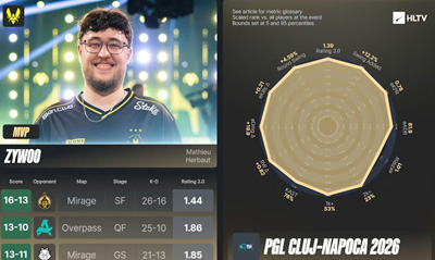 FaZe已经连续三届赛事早早出局。在不久前的2026PGL克卢日 - 纳波卡站上,全队只赢下一场比赛 —— 对阵HEROIC。这样的成...
