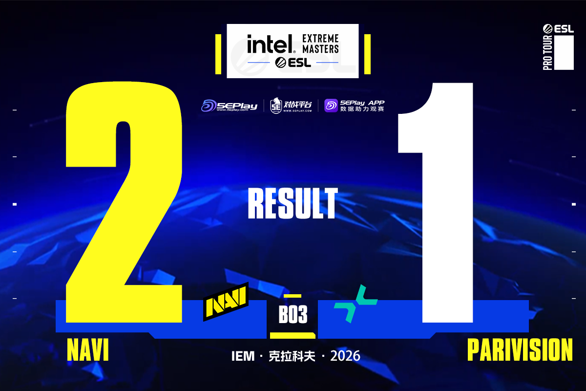 IEM克拉科夫2026,NAVI对阵PARIVISION。图一上半场的NAVI在赢下手枪局后拿到五分的优势,但后程的PV紧追比分将分差...
